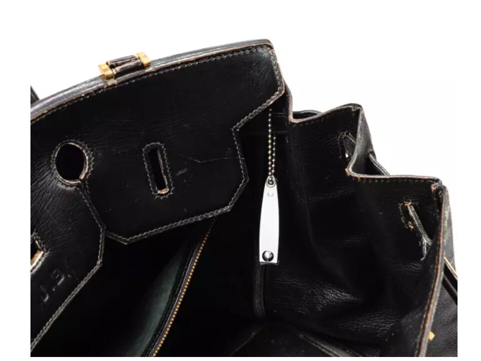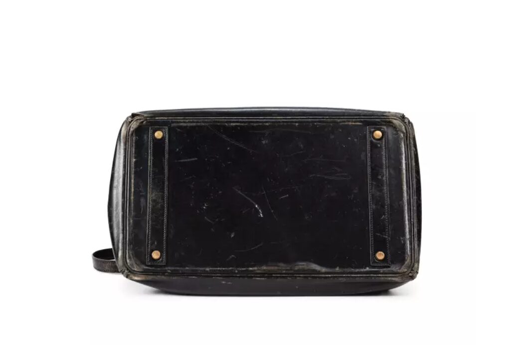 Presented in the exact condition in which Jane last used it, the bag still bears her initials “J.B.” and features her nail clipper hanging from the strap—a testament to its deeply personal significance. Crafted in Hermès Black Box leather with gilded brass hardware, its unique construction, a hybrid of the Birkin 35’s width and height and the Birkin 40’s depth, adds to its one-of-a-kind status. Other notable elements include closed metal rings (similar to the HAC model), a non-removable shoulder strap, smaller bottom studs, and an inner zip from the Éclair company.