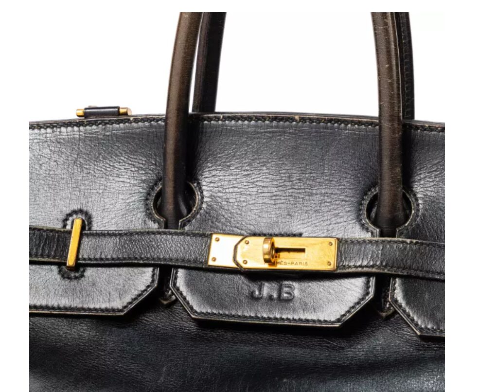 Jane’s Original Birkin was deeply personal to her, proudly bearing her initials, “J.B.,” stamped on the front flap. It quickly became her favorite accessory—one she often held close, cradling it with both arms and carrying it everywhere she went. The bag’s worn condition tells the story of years of dedicated use by the actress and singer, embodying both her style and spirit.