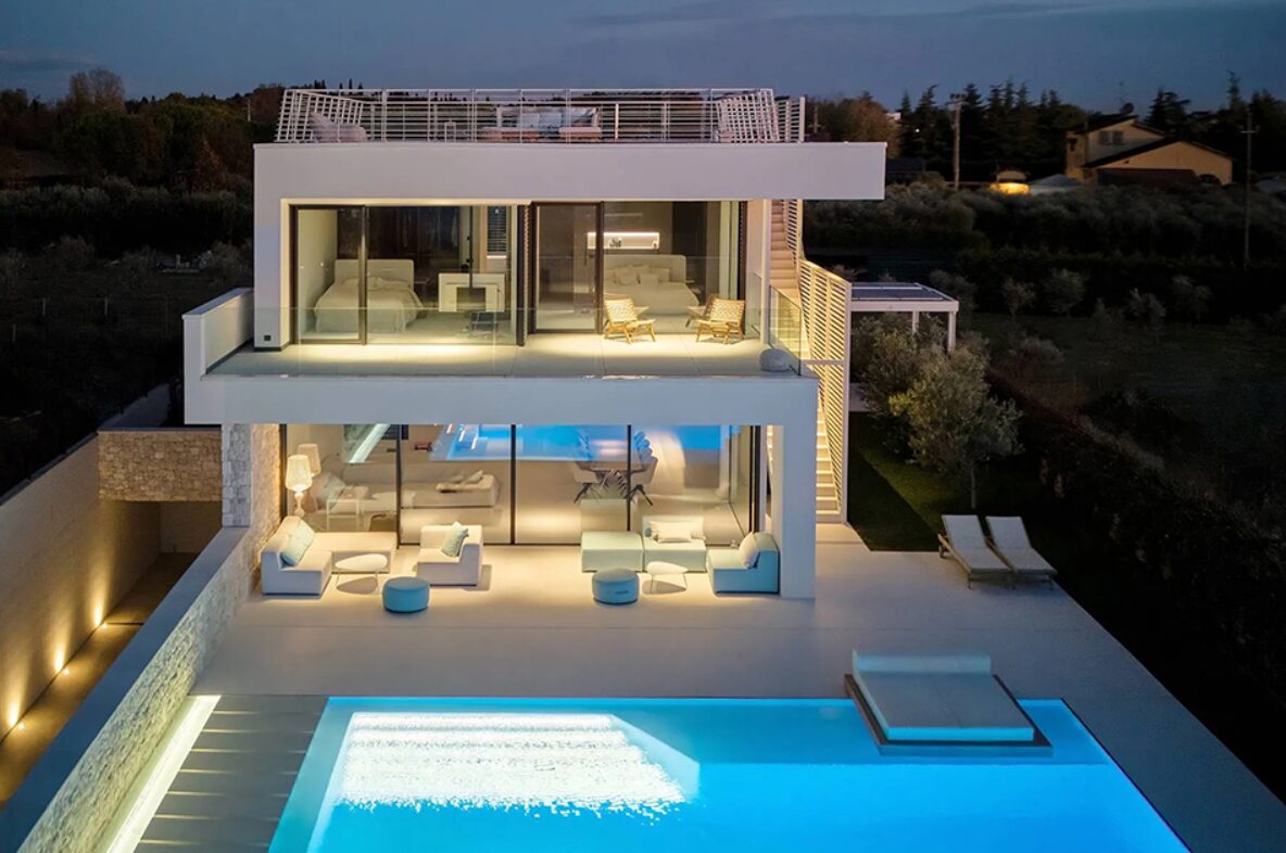 When disaster does strike, preemptive design is the best source of security. Overlooking Italy’s Lake Garda, a contemporary, glass-clad villa currently on the market employs the latest eco-friendly energy technologies: radiant heating and cooling under its floor, solar panels on a south-facing roof, and a controlled mechanical ventilation system. It is also earthquake resistant, important for its location in one of the most seismically active regions in the country.