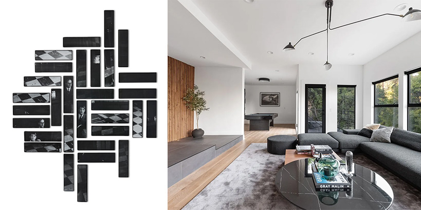 An artwork, first and foremost, needs to suit the space where it’s situated—and then furnishings can be selected that correspond with the piece. When done correctly, the most subtle intricacies can become bold declarations; notice how the repeating images in this photographic work by Gilbert and George cultivate an illusion of reflectiveness that’s heightened by the furniture in this West Hollywood mansion, while stark geometry intensifies the black window frames.